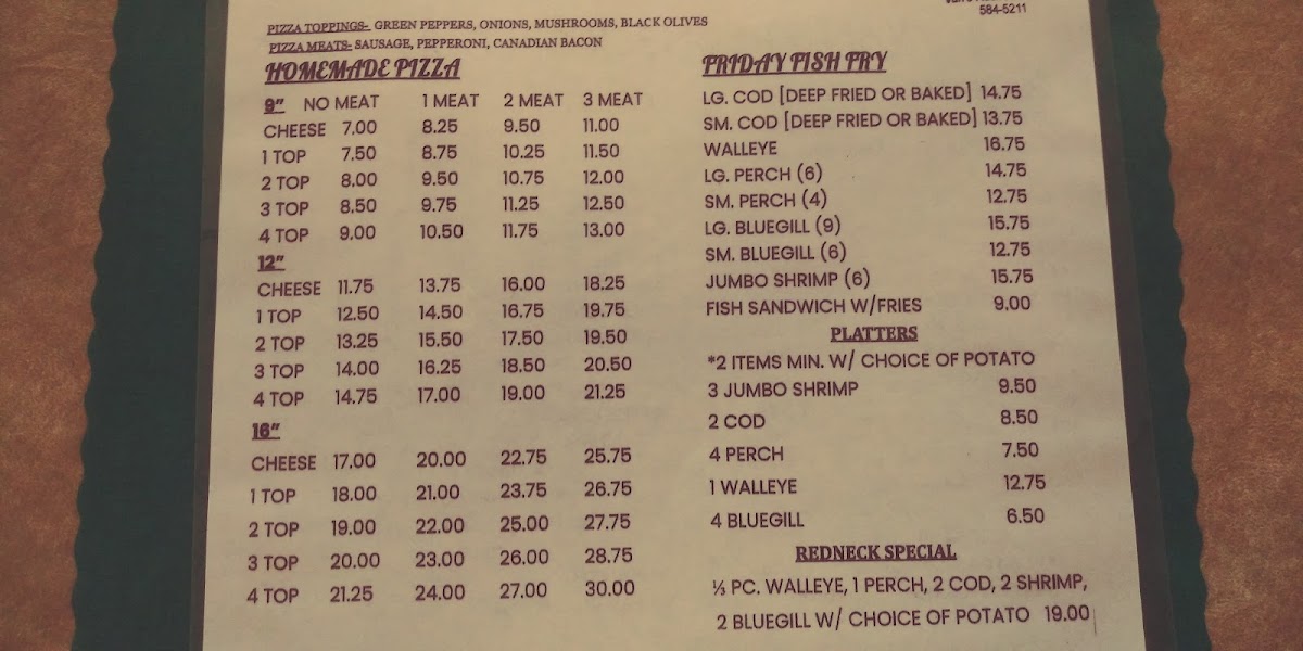 “ Great time with old friends. They suggested the Friday fish fry at Redneck Saloon. I'm glad they did. I had baked cod and my hubby deep fried cod. They were both delicious and good sized portions. Reasonably priced and good service. Definitely recommend. ”